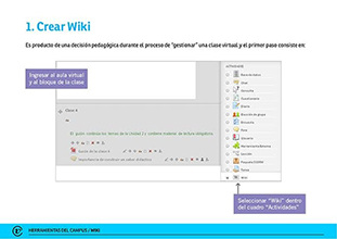 Por último, se presentan a continuación algunos pasos básicos para la creación de una wiki en Moodle. Se trata de una aproximación, pues la información se amplía en un tutorial específico publicado por el Campus Virtual UNLa.
